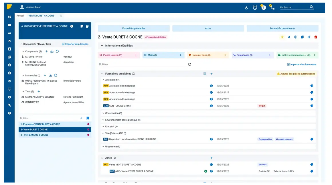 - Une interface personnalisée selon le profil utilisateur : clerc, notaire, formaliste…