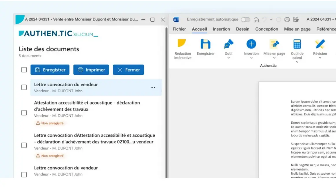 Conçue pour vous faire gagner un temps précieux, AUTHEN.TIC allie une interface intuitive à une technologie intelligente, dédiée à la rédaction d’actes notariés. Grâce à un système interactif fluide et cohérent, vous gérez vos dossiers avec souplesse : modifications, alternatives ou évolutions de scénarios deviennent simples, rapides et toujours conformes.